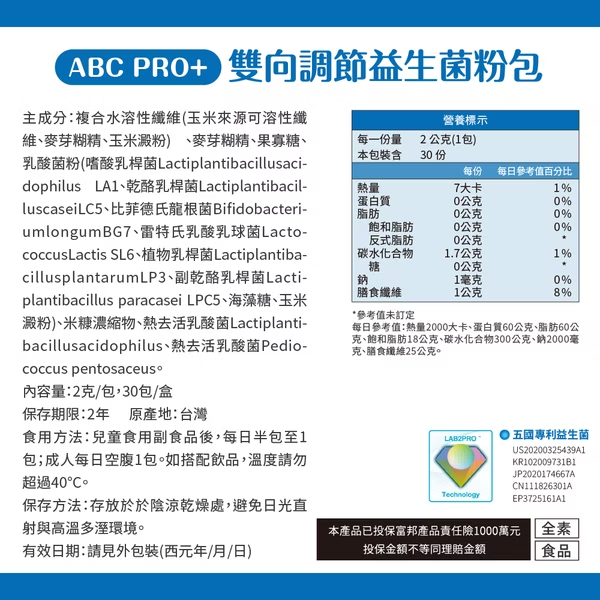 25分鐘前✔️ 三效合一:菌+纖+元全到位 ✔️ 藥廠級專利益菌,效果更有感 ✔️ 雙向調節,穩住每日好順暢 ✔️ 100%保證無添加人工添加物 - 【限定價】【2盒組】 ABC PRO+雙向調節益生菌粉包(30包X2盒)